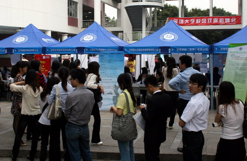 5月5日下午,由招生就業(yè)辦公室主辦的春季“雙周”招聘會在學生活動中心舉行。此次招聘會與前三次招聘會一樣,活動現(xiàn)場反響比較熱烈。前來參會企業(yè)約有40多家,提供500多個需求崗位。中國電子口岸數(shù)據(jù)中心深圳分中心、深圳市世紀櫻花實業(yè)有限公司等企業(yè)受到了學生的追捧。 一位市場營銷專業(yè)的學生告訴記者,今年畢業(yè)生的就業(yè)形勢普遍好轉,大部分同學都對自己未來工作的要求有所提升,對薪酬也有相應的期望...