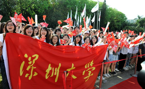 第26屆世界大學生夏季運動會深圳大學站火炬傳遞儀式10日舉行 5月10日上午,深圳第26屆世界大學生夏季運動會深圳大學站火炬傳遞暨虛擬火炬傳遞啟動儀式在深圳大學舉行。荔園處處是大運元素的標志,深大、北大深圳研究生院等高校的大學生,高舉“UU”牌、五星紅旗,高喊“從這里開始,不一樣的精彩”,現場一片歡騰。同時,首創的大運會網絡虛擬火炬傳遞正式啟動,將在全國近700所高...
