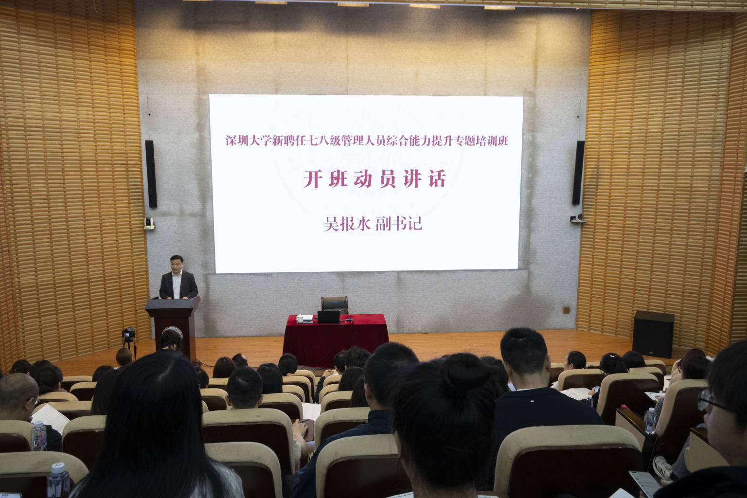 為深入學習貫徹習近平新時代中國特色社會主義思想和黨的二十大精神,全面貫徹干部教育培訓規劃要求,提升年輕干部政治素養、廉潔意識和綜合能力,3月23日,深圳大學新聘任七八級管理人員綜合能力提升專題培訓班在匯星樓舉行。深圳大學黨委副書記吳報水出席開班儀式,全校91名新聘任七八級管理人員參加培訓。開班儀式由校黨委常委、組織統戰部部長王志忠主持。吳報水作開班動員講話。他介紹了2023年七八級管理人員選聘工作整體開...