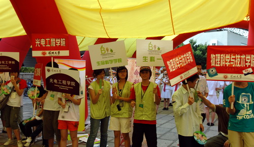 秋高氣爽,陽光燦爛,各地新生,齊聚荔園。9月5日-6日,我校在元平體育館舉行新生入學(xué)報(bào)到儀式,喜迎2009級(jí)新同學(xué)。 今年全校共招收本科新生6918人,其中,普通高考考生6571人(深圳市內(nèi)生源3437人,廣東省內(nèi)深圳市外生源2305人,外省生源829人),港澳臺(tái)學(xué)生146人,本科插班生201人。新成立的深圳大學(xué)醫(yī)學(xué)院閃亮登場,在元平體育館設(shè)點(diǎn)接待新生;新招生的運(yùn)動(dòng)訓(xùn)練專業(yè)錄取了包括國家女子乒乓球隊(duì)著名運(yùn)動(dòng)...