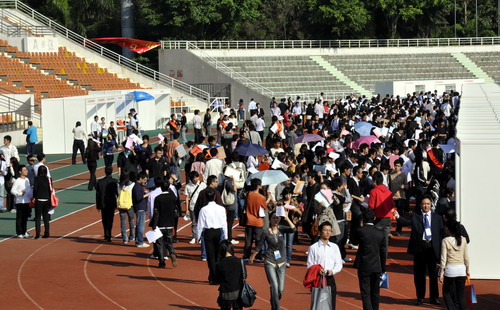 11月28日,“2009年秋季高校畢業生就業服務周暨珠三角九城市2010屆高校畢業生就業招聘會”深圳市專場在我校元平體育場舉行。本次招聘會有70多家企業進場,提供約近1000個就業崗位,吸引了校內外近10000名畢業生進場求職。 本次招聘會由我校與深圳市人力資源和社會保障局聯合主辦。用人單位提供的就業崗位主要集中在電子、建筑、制造、醫藥、教育、財務、行政、人力資源、廣告設計等行業。招聘現場...