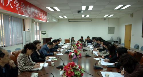 12月18日,中央黨校中央黨校省部級(jí)干部進(jìn)修班黨建專題調(diào)研組一行十余人到來(lái)我校進(jìn)行調(diào)研。我校領(lǐng)導(dǎo)江潭瑜、章必功、陶士平、阮雙琛在辦公樓201室接待了調(diào)研組一行。下午,調(diào)研組成員分別與我校干部教師和各學(xué)院學(xué)生代表進(jìn)行座談,副校長(zhǎng)阮雙琛、李永華分別參加了干部教師和學(xué)生代表座談會(huì)。 調(diào)研組組長(zhǎng)、國(guó)務(wù)院僑辦副主任趙陽(yáng)指出,為了更好學(xué)習(xí)貫徹黨的十七屆四中全會(huì)精神,黨建專題調(diào)研組根據(jù)中央...