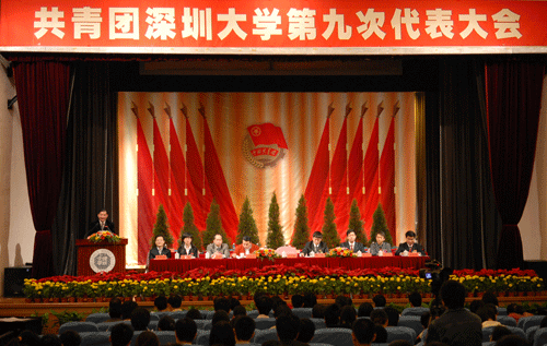 2007年12月30日上午,共青團深圳大學第九次代表大會在國際會議廳召開。深圳大學黨委書記江潭瑜,副校長邢鋒,團市委學少部部長周岸標,深圳市教育局團委、我校組織部、學生處、團委、各學院、研究生部負責人出席大會開幕式。本次大會的議程是聽取并審議共青團深圳大學第八屆委員會的工作報告,選舉共青團深圳大學第九屆委員會。