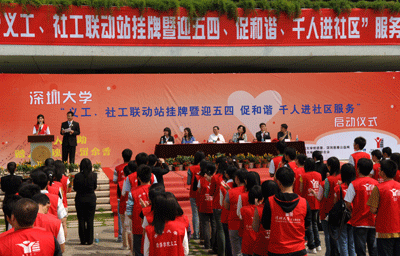 【深圳特區(qū)報(bào)訊】(記者 秦小艷 通訊員 古維)4月26日,深圳大學(xué)與深圳慈善公益網(wǎng)社工、義工聯(lián)動站正式授牌,深大4000名學(xué)生義工將與青年社工們相互配合,各取所長,共同為社會提供更專業(yè)體貼的服務(wù),這也是全國首個高校義工社工聯(lián)動站。