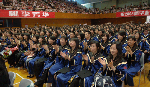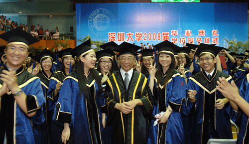 深圳大學2008屆本科畢業生共有4216名,分布在經濟學院、化學與化工學院、材料學院、物理科學學院、高爾夫學院、管理學院、數學與計算科學學院、師范學院、傳播學院、電子科學與技術學院、外國語學院、文學院、機電與控制工程學院、土木工程學院、建筑與城市規劃學院、法學院、軟件學院、信息工程學院、藝術設計學院、生命科學學院等20個學院、49個專業中,是我校畢業全日制本科生人數最多的一年。其中有3363名本科生按照教學計劃要求完成專業學習,按期取得畢業證書,獲得學士學位。本學期期末考試后還將有部分學生達到相關教學計劃要求并取得畢業證書,獲得學士學位。