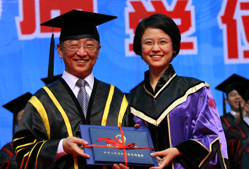 典禮暨授予儀式在雄壯的國歌聲中開始。黨委副書記陶一桃宣讀學校授予研究生碩士學位的決定。校長章必功為獲得碩士學位的同學一一頒發證書并合影留念。
