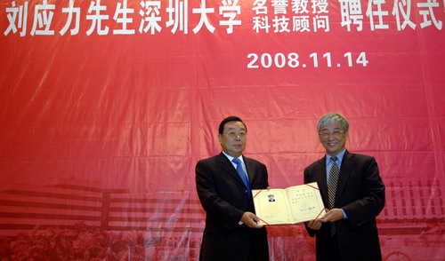 劉應(yīng)力受聘深圳大學(xué)名譽(yù)教授和科技顧問