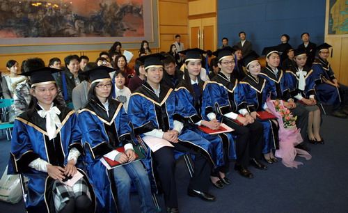 1月16日上午,在國際會議廳D廳,我校為2008屆參加“西部計劃”抗震救災專項行動的九名志愿者同學舉行簡單而隆重的畢業典禮暨學位授予儀式。校學位評定委員會主席、校長章必功,校學位評定委員會副主席、校黨委副書記陶一桃,副校長李永華,教務處、學生處、招生就業辦、外國語學院、管理學院、法學院、物理科學與技術學院、信息工程學院、建筑與城市規劃學院、土木工程學院負責人等主禮教授,相關學院師生代表和學生家長共同出席畢業典禮。李永華主持典禮。