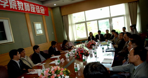 會前,專家組與我校教師在國際會議廳A廳舉行座談會,共同探討我校醫學院的建設問題。還在國際會議廳B廳聽取了醫學院教研室主要負責人的工作匯報。