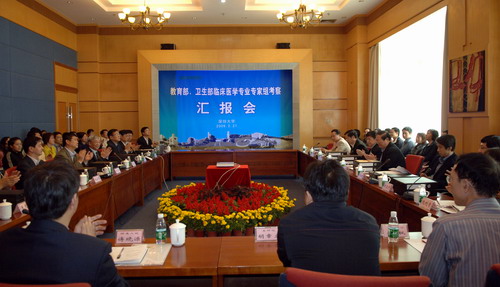 2月21日下午校長章必功、副校長陳思平向專家組匯報了學校的總體情況和醫學院的籌建情況。會議在國際會議廳D廳舉行,參加會議的專家組成員有:首都醫科大學校長呂兆豐、北京協和醫科大學黨委書記李立明、衛生部科教司副司長孟群、教育部高教司農林醫藥處處長王啟明,廣東省衛生廳科教處處長徐慶鋒、廣東省教育廳高教處副處長劉文平、中山大學國家醫學教育研究中心主任冼利青。深圳市衛生局副局長羅樂宣和市教育局、衛生局相關部門領導和專家參加會議。我校參加匯報會的有校領導章必功、邢鋒、陳思平、李永華以及醫學院、生命科學學院全體教師。