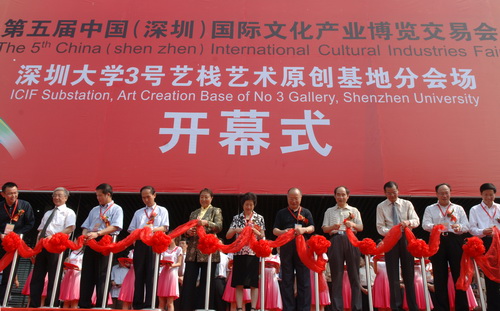 邱玫、姜忠、陳觀光、姚欣耀、吳忠、江潭瑜、章必功等為開幕式剪彩。邱玫、姜忠、梁展鵬、江潭瑜為深圳大學文化產業研究院揭牌。姜忠宣布第五屆文博會深圳大學3號藝棧藝術原創基地分會場開幕。