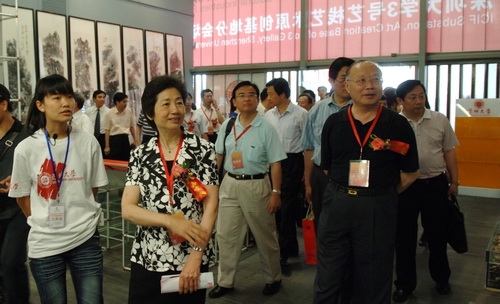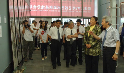 第五屆文博會深圳大學3號藝棧藝術原創基地分會場開幕式后,市領導邱玫、姜忠、陳觀光、姚欣耀等在我校領導章必功、陶士平、李永華等的陪同下,參觀了3號藝棧藝術原創基地。