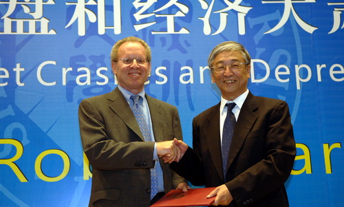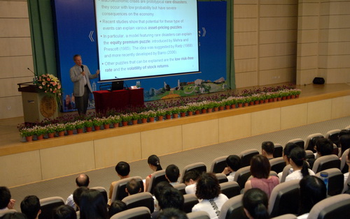 6月5日下午,哈佛大學知名經濟學教授羅伯特?巴羅(RobertJ.Barro) 在科技樓一號報告廳為深圳市民作了一場題為“股市崩盤與經濟大蕭條”的精彩講座。我校校長章必功、副校長李鳳亮、高級研究中心主任鄒恒甫教授出席了講座。講座由李鳳亮主持。
