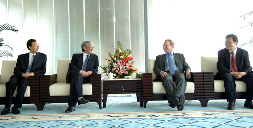 講座前,章必功在科技樓貴賓廳會見了客人。他對巴羅教授的到來表示歡迎,他說要把深圳大學辦成一流大學需要像巴羅教授這樣頂級的學者支持。