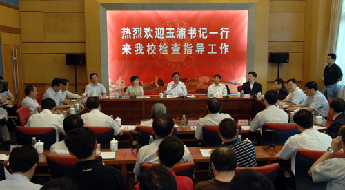 6月23日下午,廣東省委副書記、深圳市委書記劉玉浦到深圳大學就深入開展學習實踐科學發展觀活動和推進高校教育改革進行調研,與深大領導和師生代表進行座談。劉玉浦寄語深圳大學以開展學習實踐活動為契機,大力抓好教育改革,努力建設成為立足深圳、面向全國、走向世界的高水平、有特色、創新型的一流大學,為深圳爭創國家教育綜合改革示范區發揮帶頭作用。市領導李意珍、王穗明、戴北方、唐杰一同參加了調研。