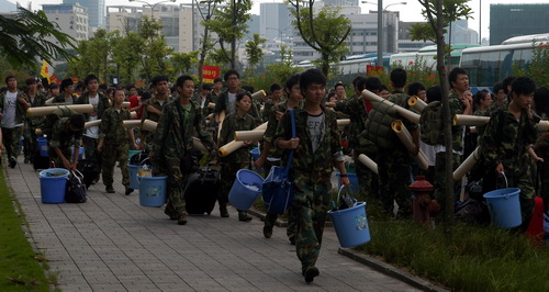 9月12日,我校2009級6560名新生,在祖國60華誕來臨之際,吹響了軍訓的號角,奔赴廣州、佛山和葵涌軍訓基地。我校黨委副書記陶一桃,副校長阮雙琛、邢鋒、李永華,各團政委及各學院領導親臨出發地點歡送新生。