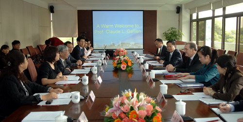 12月2日,國際大體聯(FISU)第一副主席、CESU主席克勞德?噶里恩在市政府副秘書長黃國強和大運執行局相關工作人員的陪同下到訪我校,就2011年深圳FISU學術大會協議草案及籌辦細節進行溝通。校長章必功、副校長李鳳亮和學校相關職能部門負責人接待了噶里恩一行。