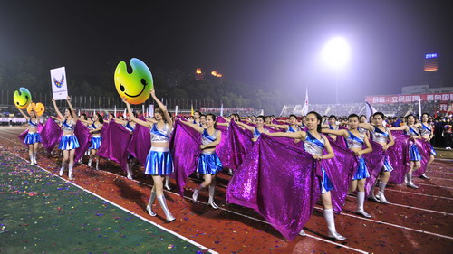 彩旗飄揚,樂曲高奏,在一片歡騰的氣氛中,深大學子的炙熱激情擊退來自遠方的寒流,12月7日晚上,深圳大學2009年運動會體育場隆重開幕。
