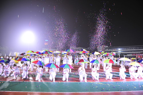開幕式正式開始,國旗、校旗、紅旗隊員個個精神抖擻,踏著解放軍進行曲鏗鏘有力的節奏,步伐堅定的邁向了會場中心。隨后各學院代表隊依次出場,他們穿著風格各異的服裝,走著整齊的步伐,英姿勃發、活力四射,充分體現出深大學子飽滿的精神風貌和新穎的創意。跆拳道社、棒球社、交誼舞社等社團也呈上了各具特色、精彩紛呈的表演,展示了當代大學生的青春活力。