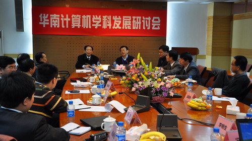 此次研討會由陳國良召集,科技部高技術發展中心信息處處長嵇智源,國家自然科學基金委二處處長劉克,中科院高技術局副局長孟丹,廣東省計算機協會秘書長陳宏波,中國科學院深圳先進技術研究院院長樊建平,廣東省經濟和信息化委員會總工程師葉元齡,我校校長章必功等相關單位領導,華南各大院校和企業代表等出席。