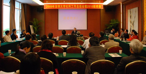 社科處姜安處長做2009年社科工作總結。總結指出,我校文科科研管理工作在以往取得成績的基礎上穩步增長,主要體現在以下四個方面:一、項目與成果管理穩步推進。2009年度國家社科基金項目立項6項,在廣東高校中與華南師范大學并列第四名,立項率13.95%,明顯高于全國平均立項率;并且在全國藝術科學規劃項目和國家軟科學項目有所突破,獲得全國藝術科學規劃項目2項,國家軟科學項目1項;2009年項目總經費達2123萬元。科研成果獲省部級以上獎勵11項,其中教育部1項成果獲二等獎,司法部2項成果獲獎。二、基地與機構建設特色鮮明,成果卓著。成立港澳基本法研究中心,設立知識產權研究所;大力發展文化產業研究,探討文化產業發展,成功舉辦2009年第五屆文博會深圳大學分會場。三、積極開展學術交流與國際合作。先后邀請蒙代爾、李昌鈺等知名專家到校講學,舉辦了中國數量經濟年會、廣東省2009年學術年會青年學者專場等多個學術會議。四、完善社科管理,增強服務意識。放眼2010年,姜安提出新一年社科工作的“十大要務”,即從加強基地建設、爭取重大攻關項目立項、規劃兩院、策劃紀念深圳經濟特區成立30周年系列活動等方面,積極推進社科科研工作創新。