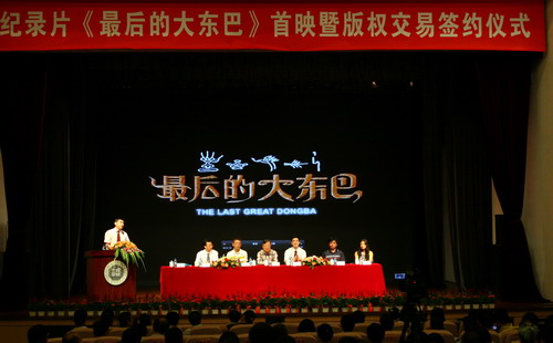 5月12日晚,由深圳市委宣傳部、深圳大學共同投資,深大教師、著名詩人、谷雪兒等耗費六年時間和精力拍攝的紀錄片《最后的大東巴》深大首映禮暨版權交易簽約儀式在國際會議廳舉行。文化部文化市場司副司長張新建、麗江東巴文化研究院院長趙世紅、著名導演侯詠和我校黨委副書記、副校長邢苗,副校長李鳳亮出席會議。
