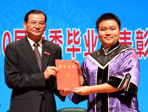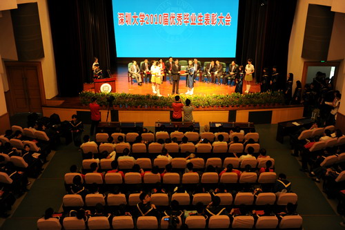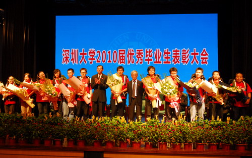 校黨委副書記、副校長邢苗宣讀了《關于表彰深大2010屆優秀本科畢業生的決定》和《關于表彰深大2010屆優秀畢業研究生的決定》,361名同學獲得優秀畢業生稱號。其中,全日制本科優秀畢業生291人,全日制優秀畢業研究生70人。