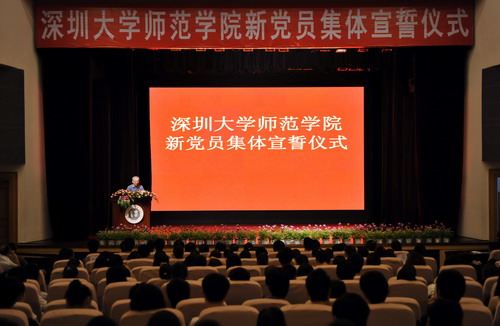 7月10日晚,我校師范學(xué)院共310名新黨員在國(guó)際會(huì)議廳舉行集體宣誓儀式。校長(zhǎng)章必功和師范學(xué)院有關(guān)領(lǐng)導(dǎo)、師范學(xué)院全體黨支部書記及新黨員參加了宣誓儀式。
