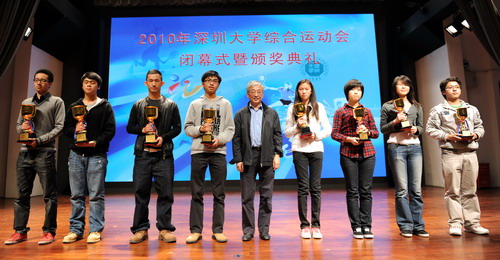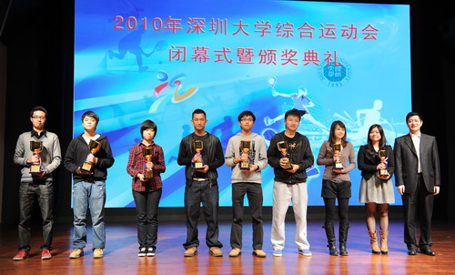 12月23日晚,深圳大學2010綜合運動會閉幕式暨頒獎典禮在國際會議廳舉行。校長章必功,副校長邢鋒、李永華,各學院、研究生部負責人出席了這次活動。