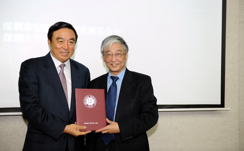 陶一桃宣讀了“深圳大學聘任馬蔚華為深圳大學特約教授”的文件。