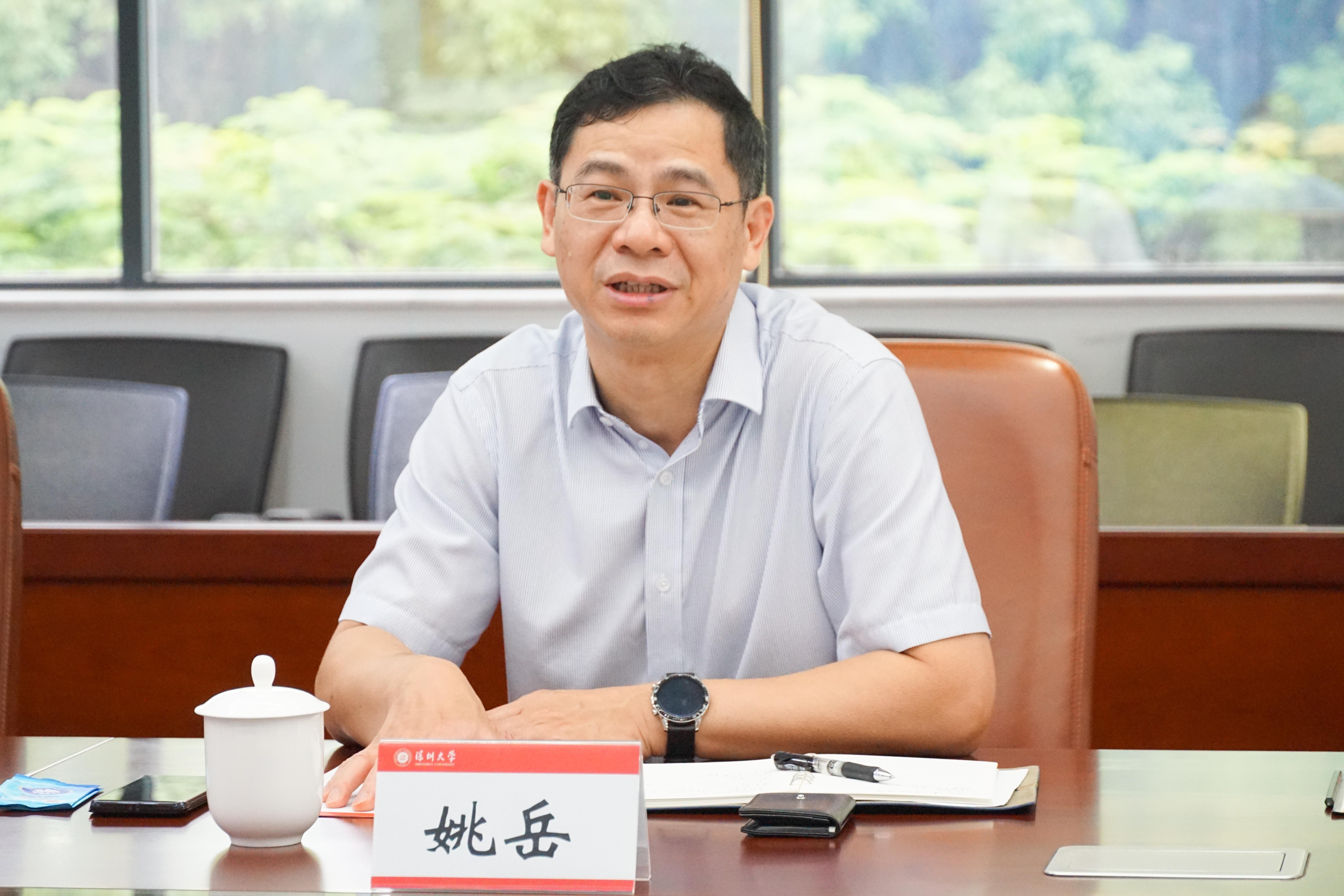 姚岳對深圳大學的建設發展成果表示贊賞。他表示,深圳大學是一所年輕的、進步十分迅速的大學,不斷提升的本科招錄分數線以及在學科建設、人才培養、科學研究等方面的知名度、影響力,都體現出深大具有一流的辦學水平。廣東通服作為中國通服的最大的全資子公司,服務于通信、互聯網和信息行業,為客戶提供規劃設計、建設監理、集成開發和運營維護等綜合智慧服務,特別是旗下注冊于深圳的多家子公司、分公司,提供近2萬個就業崗位,在深圳設有國家級博士后科研工作站,為深圳市城市發展和信息化提升做出應有貢獻。姚岳表示,希望廣東通服能夠與深大在科學研究、人才培養、成果落地等方面進行深度交流與合作,共謀數字經濟發展新機遇。