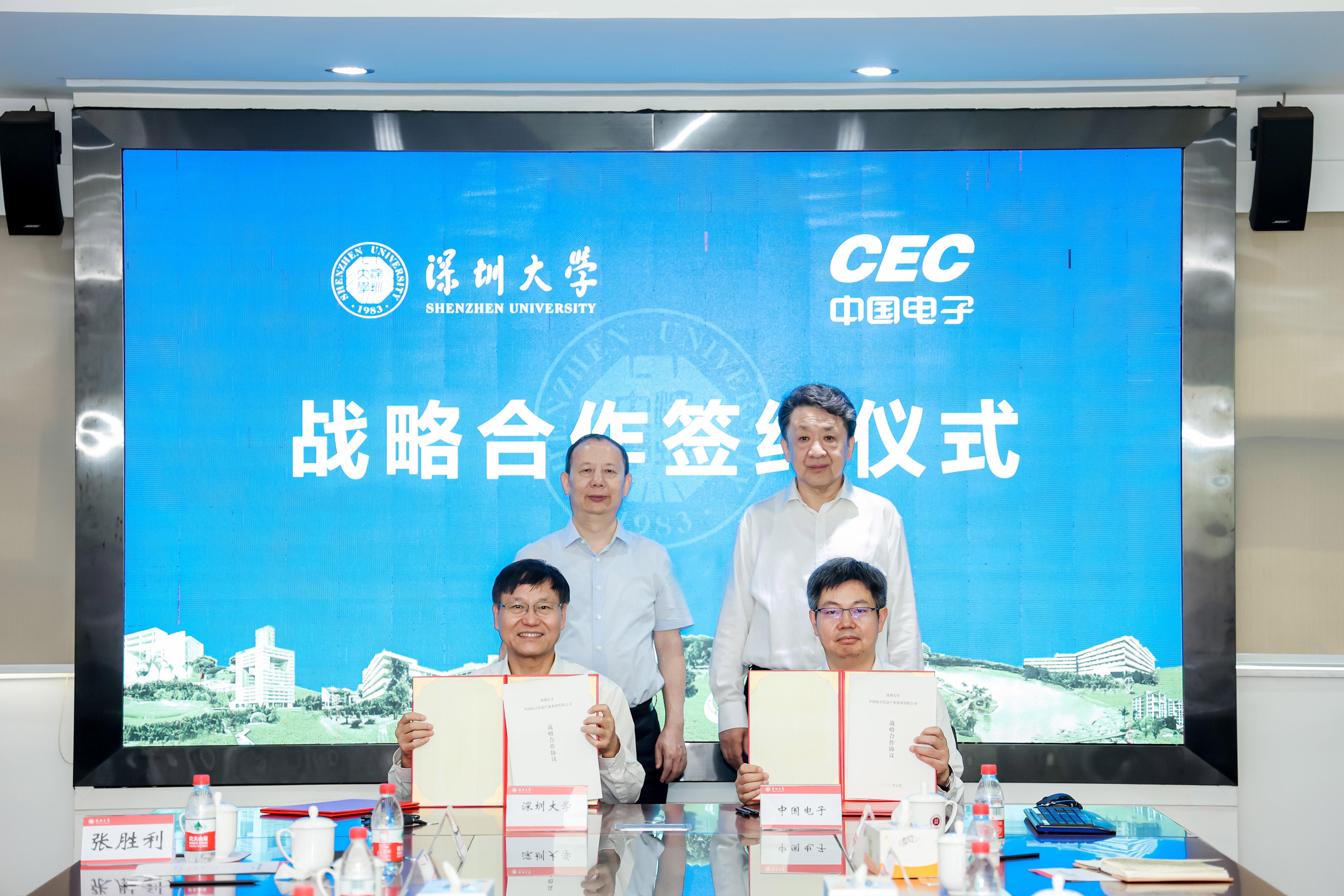 隨后,張學記、陳錫明分別代表深圳大學和中國電子,在與會人員的見證下簽署戰略合作協議。
