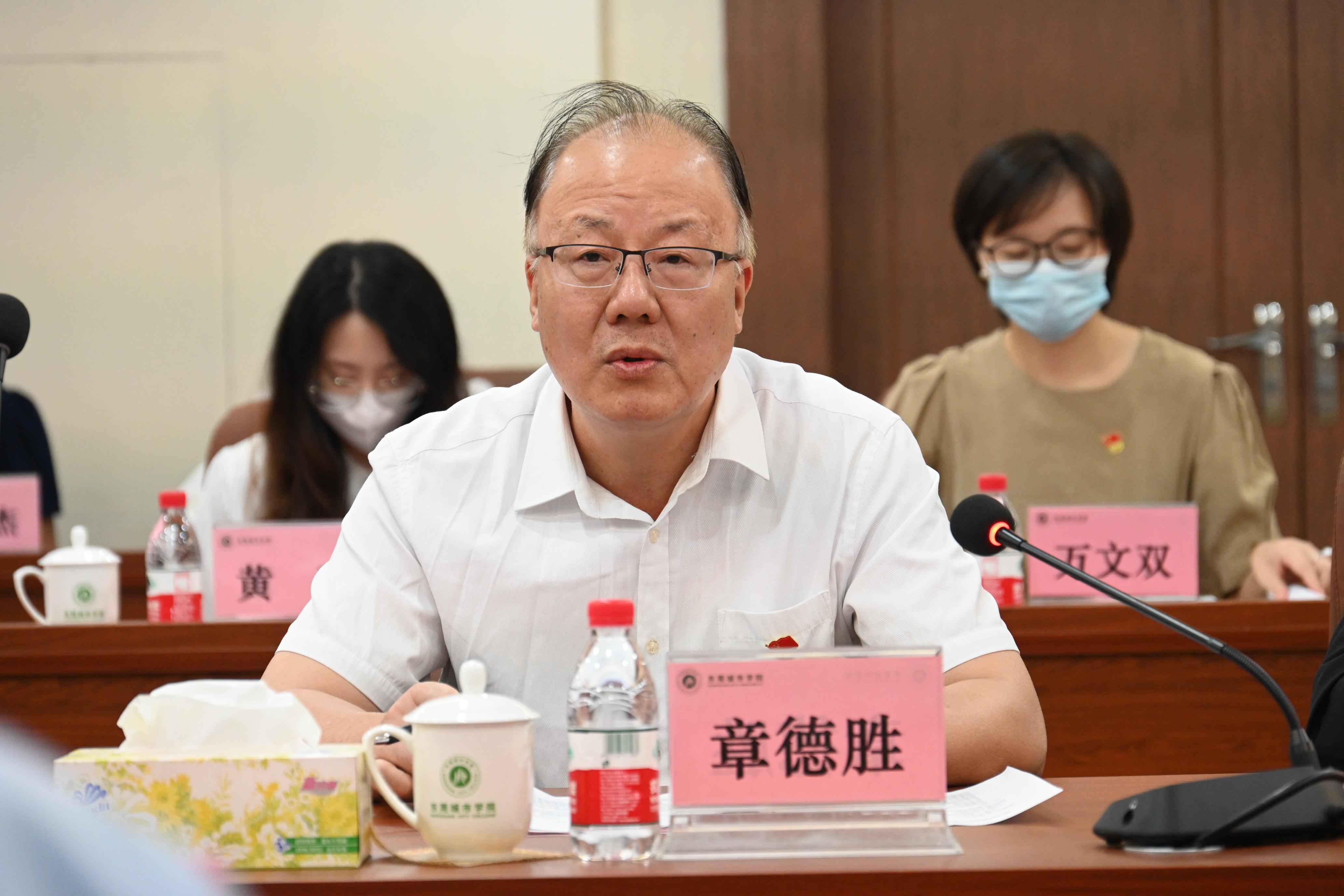章德勝對李清泉一行的到來表示熱烈歡迎,對深圳大學黨委的高度重視、精心謀劃安排以及選拔精兵強將幫扶黨建工作表示衷心感謝。他表示,希望東莞城市學院在深圳大學黨委的幫助支持下,通過此次“組團式”黨建幫扶,進一步加強黨建引領,促進學校在學科建設、教學科研、學生服務和思政工作等方面邁上新臺階。