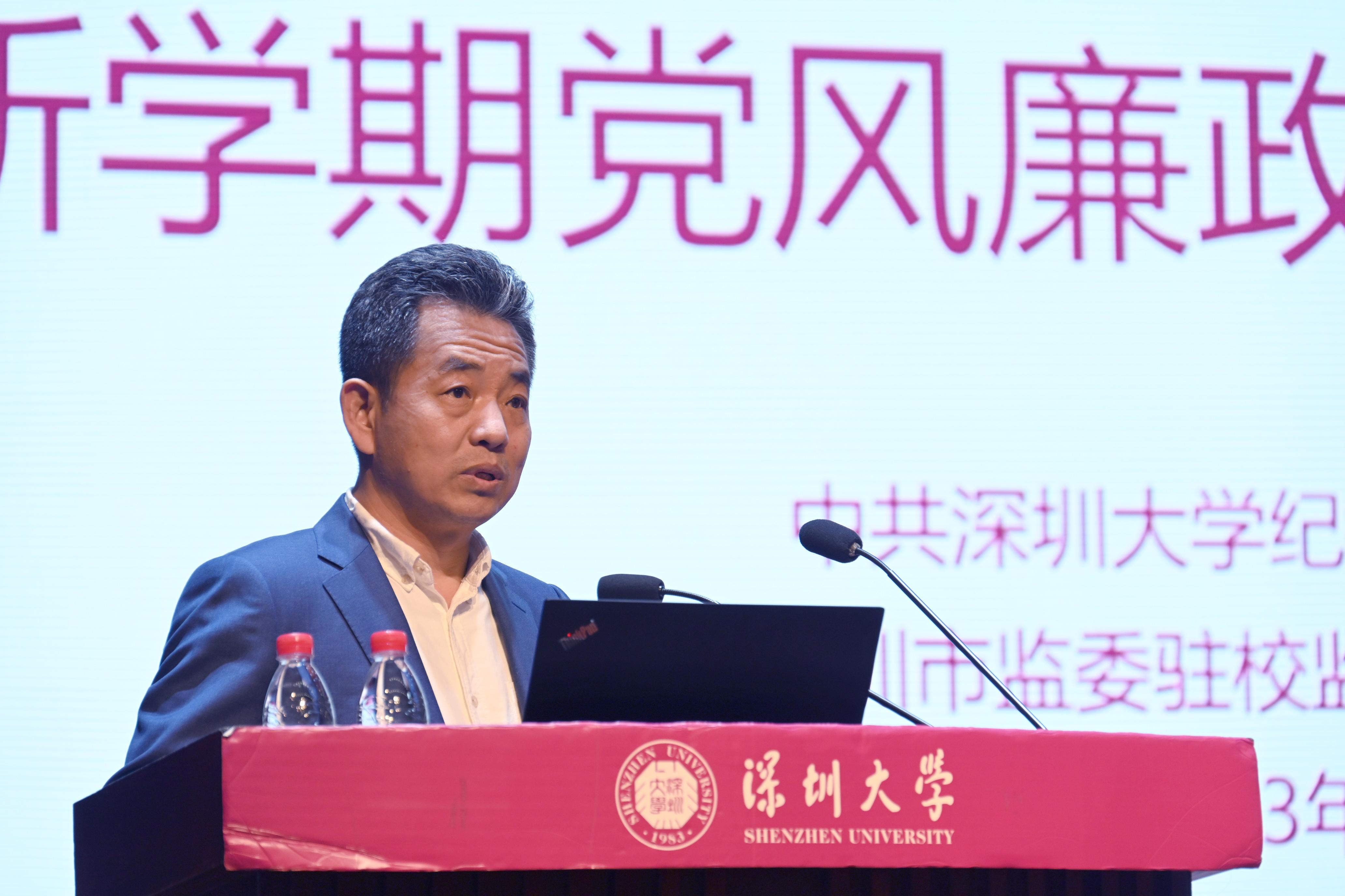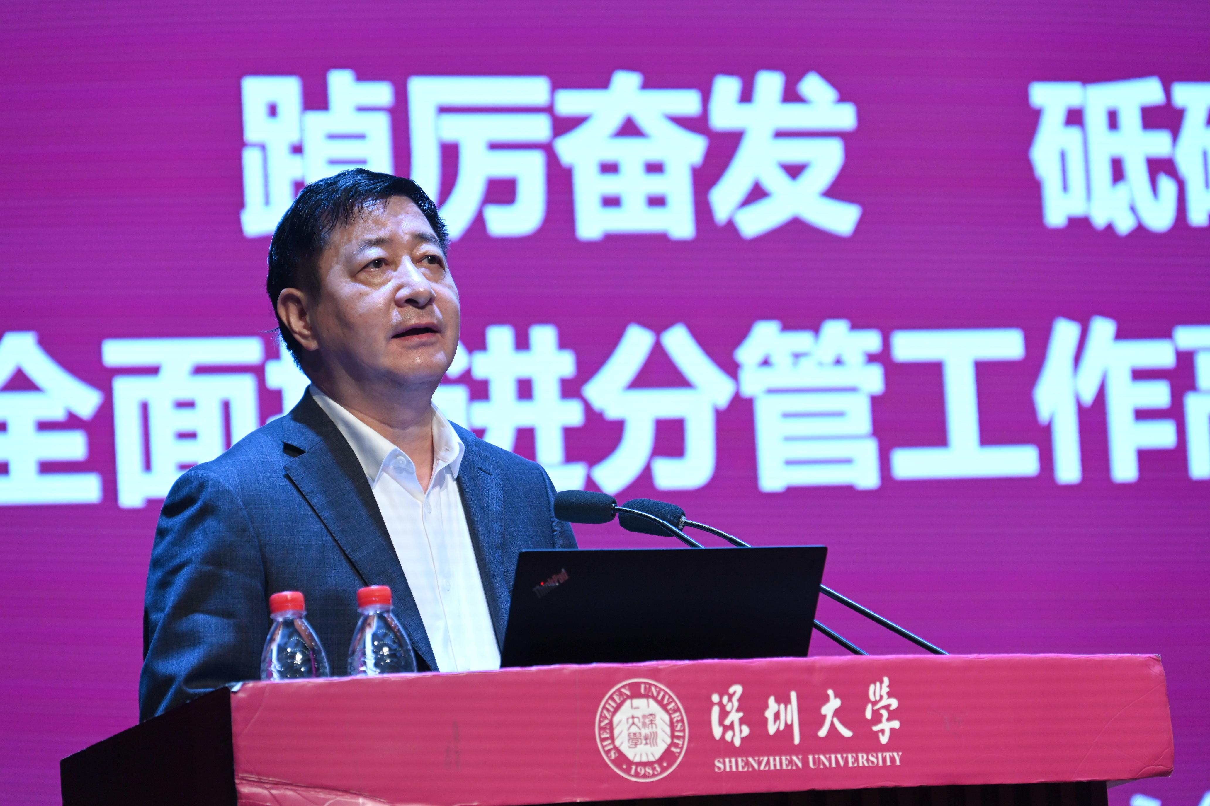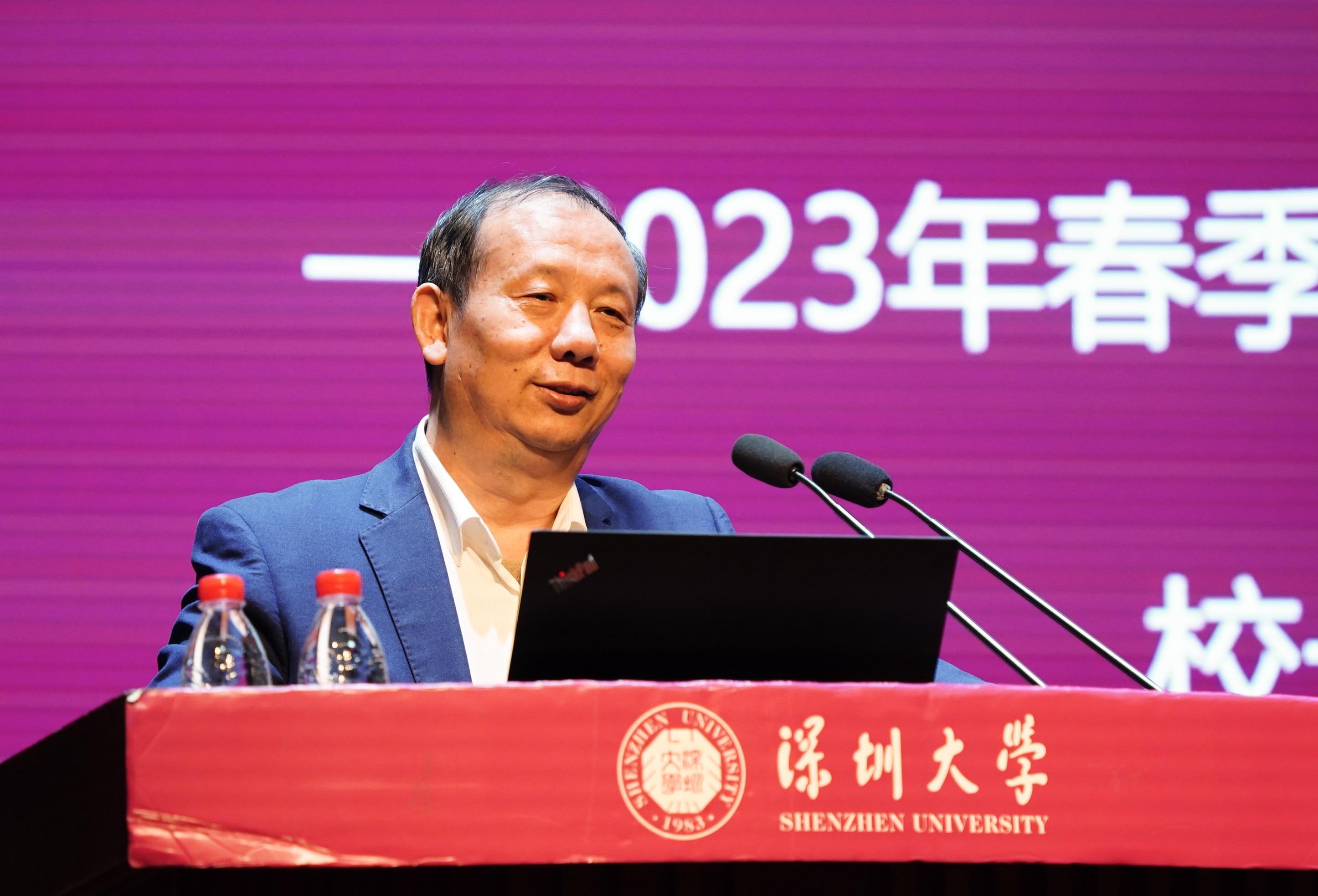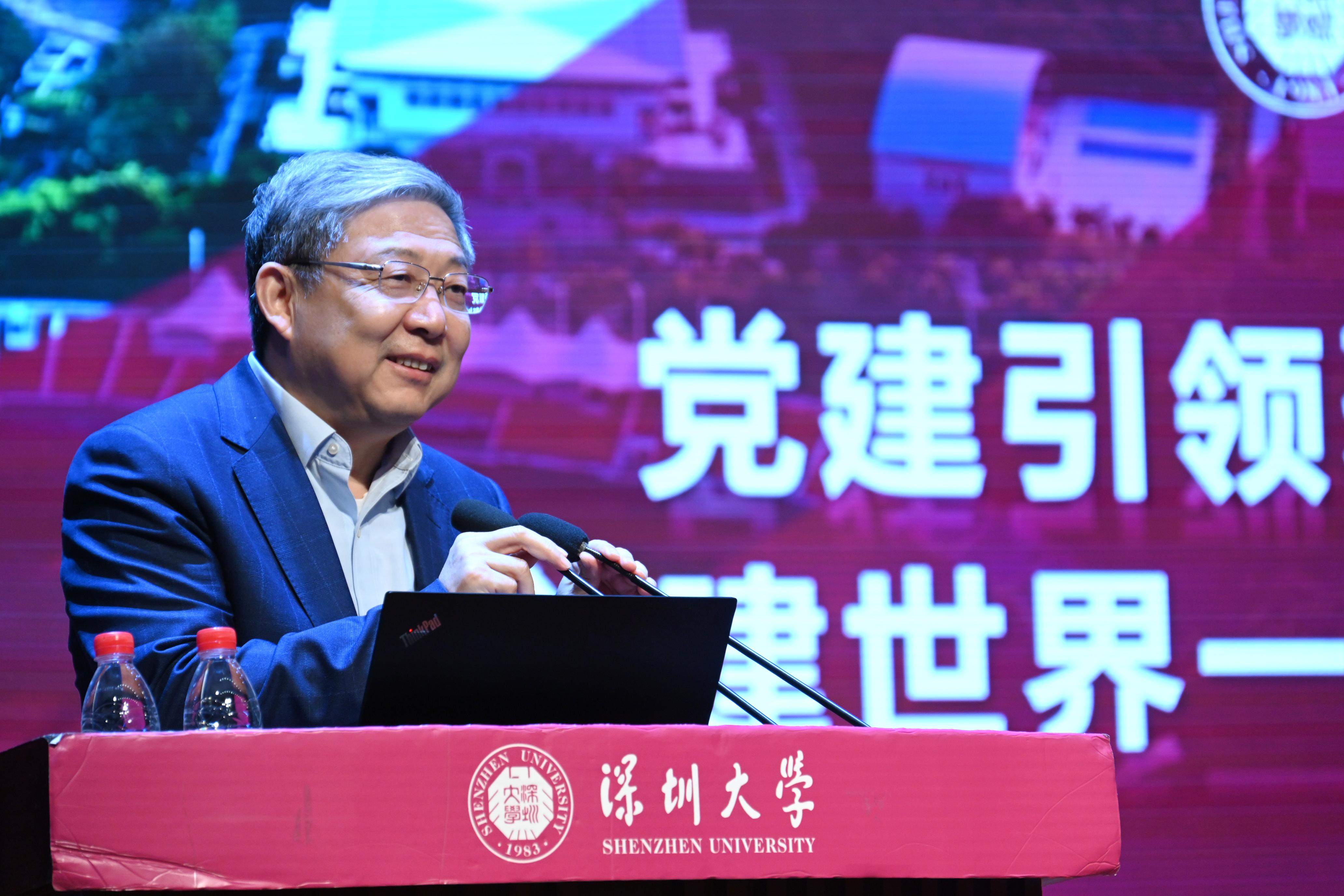 李清泉以“黨建引領聚合力 奮力創建世界一流綜合性大學”為主題,對新學期學校黨建工作作出部署。李清泉指出,2023年全校工作要以習近平新時代中國特色社會主義思想為指導,深入貫徹落實黨的二十大精神,深入學習貫徹習近平總書記對廣東、深圳系列重要講話和重要指示精神,貫徹落實省委十三屆二次全會、市委七屆六次全會部署,按照上級教育主管部門的要求,立足國家重大戰略和“雙區”發展需求,圍繞立德樹人根本任務,聚焦學校高水平大學三期建設、打造高峰學科、深化全方位育人思政教育工作機制、深化本科教育教學改革、優化人才培養體系、推動科研高質量發展、強化師資隊伍建設、實施國際化發展戰略等重點工作,進一步推動落實“十四五”發展規劃,加快推進創建世界一流綜合性大學。