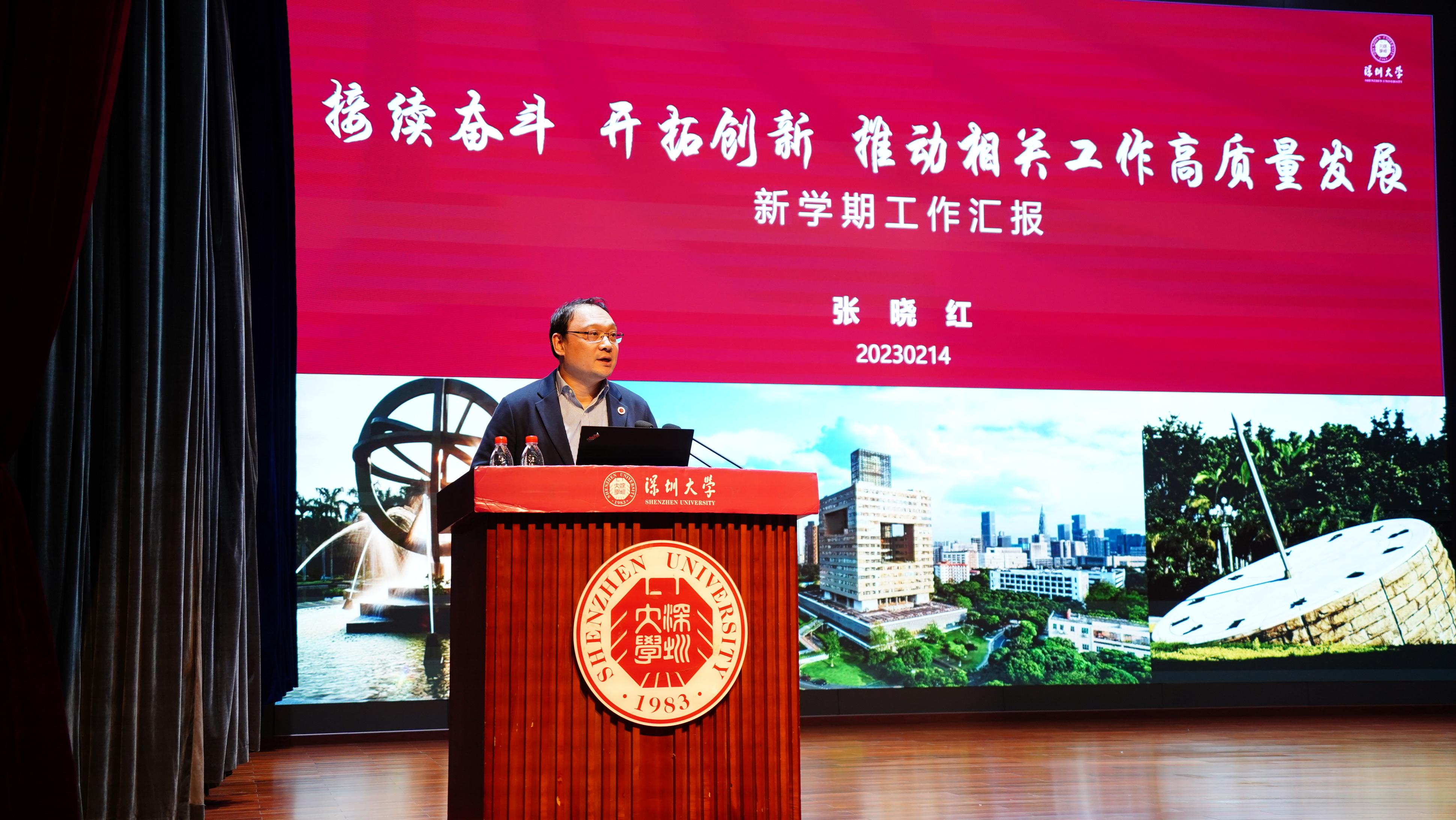 張曉紅就本科人才培養及招生、社科工作、繼續教育工作作出部署,提出本科人才培養十大工作要點、四大重點項目,以及全力推進深大人文社科高質量發展的工作思路。