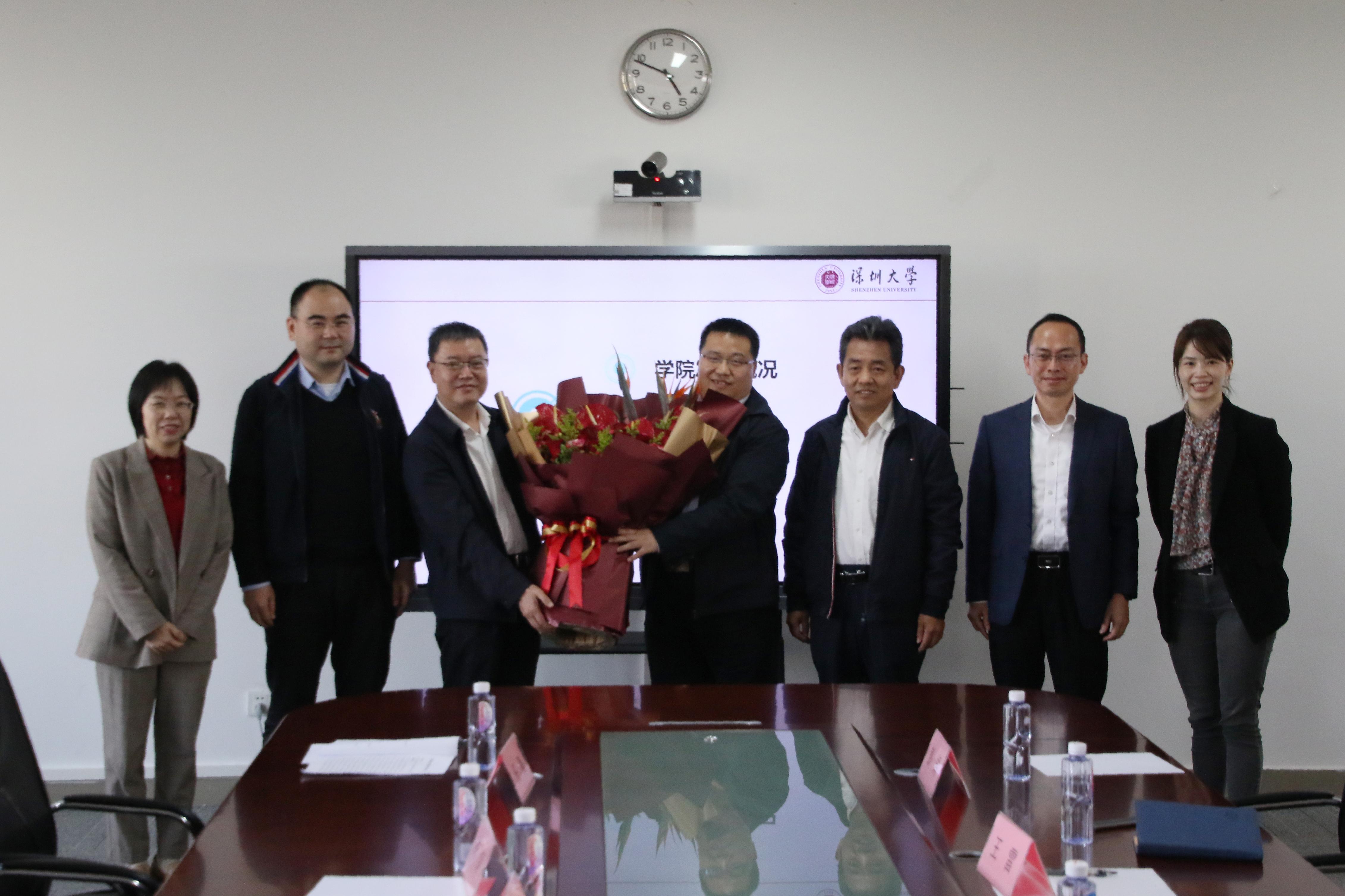 2月23日下午,深圳大學黨委副書記王月興陪同深圳市委統戰部副部長唐向群一行8人,來到深圳大學麗湖校區,走訪慰問民主黨派專家人才,調研材料學院和廉政研究院,并就民主黨派內部監督和檢察監督相適宜相銜接有關課題研究進行座談交流。