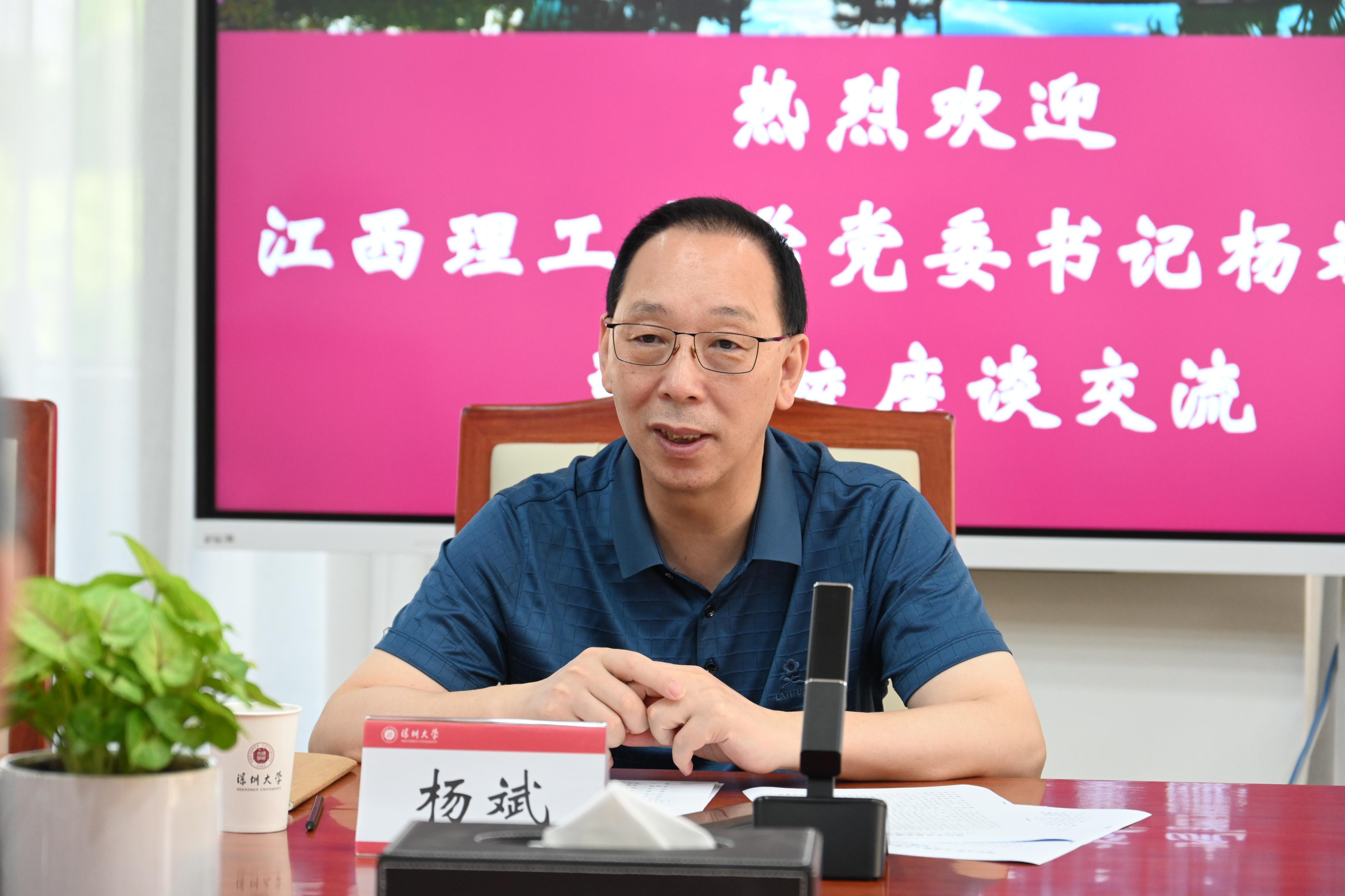 李清泉對楊斌一行的到訪表示熱烈歡迎。他表示,深圳大學作為特區大學、窗口大學、實驗大學,得益于區位優勢及市委市政府的大力支持,建校四十年來與深圳特區同步發展,創新發展成果得到了多方認可,未來也極具發展潛力。在追求自身發展的同時,深大積極承擔社會責任,開展了多項高校定點幫扶項目,為多所高校提供技術與人才支撐。李清泉表示,本次座談交流對雙方都具有重要意義,期待與江西理工大學深化校地合作、校企合作、產學研合作,促進兩校共同發展;強化協同育人,成就中國高等教育攜手發展的佳話。