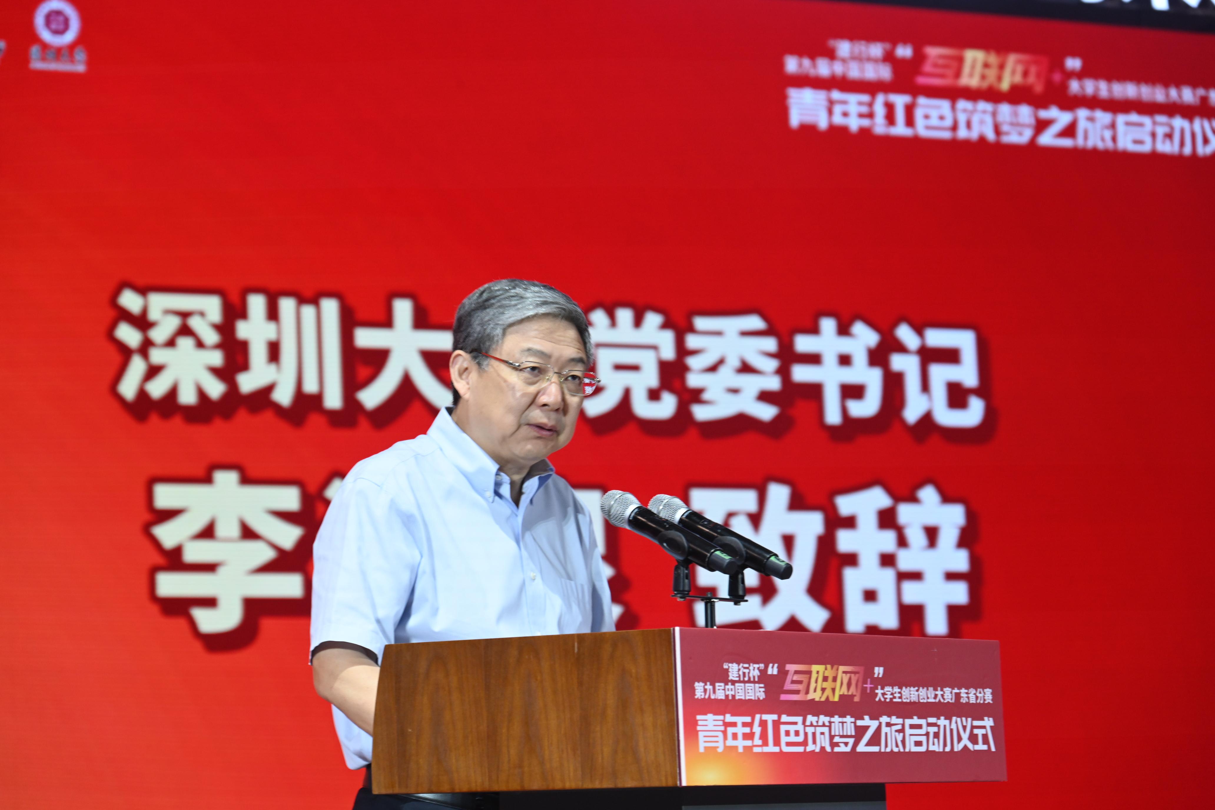 2023年6月15日,“建行杯”第九屆中國國際“互聯網+”大學生創新創業大賽廣東省分賽(以下簡稱“互聯網+”廣東省賽)“青年紅色筑夢之旅”活動(以下簡稱“紅旅活動”)在深圳大學正式啟動。廣東省教育廳二級巡視員邱克楠、深圳大學黨委書記李清泉、中國建設銀行廣東省分行公司委常務副主任范題、深圳市教育局調研員姚一勤出席活動啟動儀式,深圳大學副校長張曉紅主持啟動儀式。