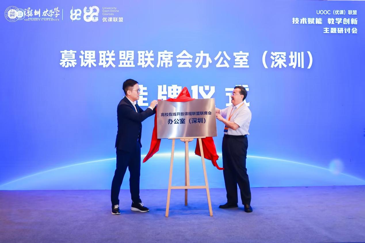 今年,聯席會決定在深圳設立辦公室,辦公室設在優課聯盟課程運營中心深大優課公司。會上,徐曉飛和深大優課公司總經理姚凱一同為慕課聯盟聯席會辦公室(深圳)揭牌。