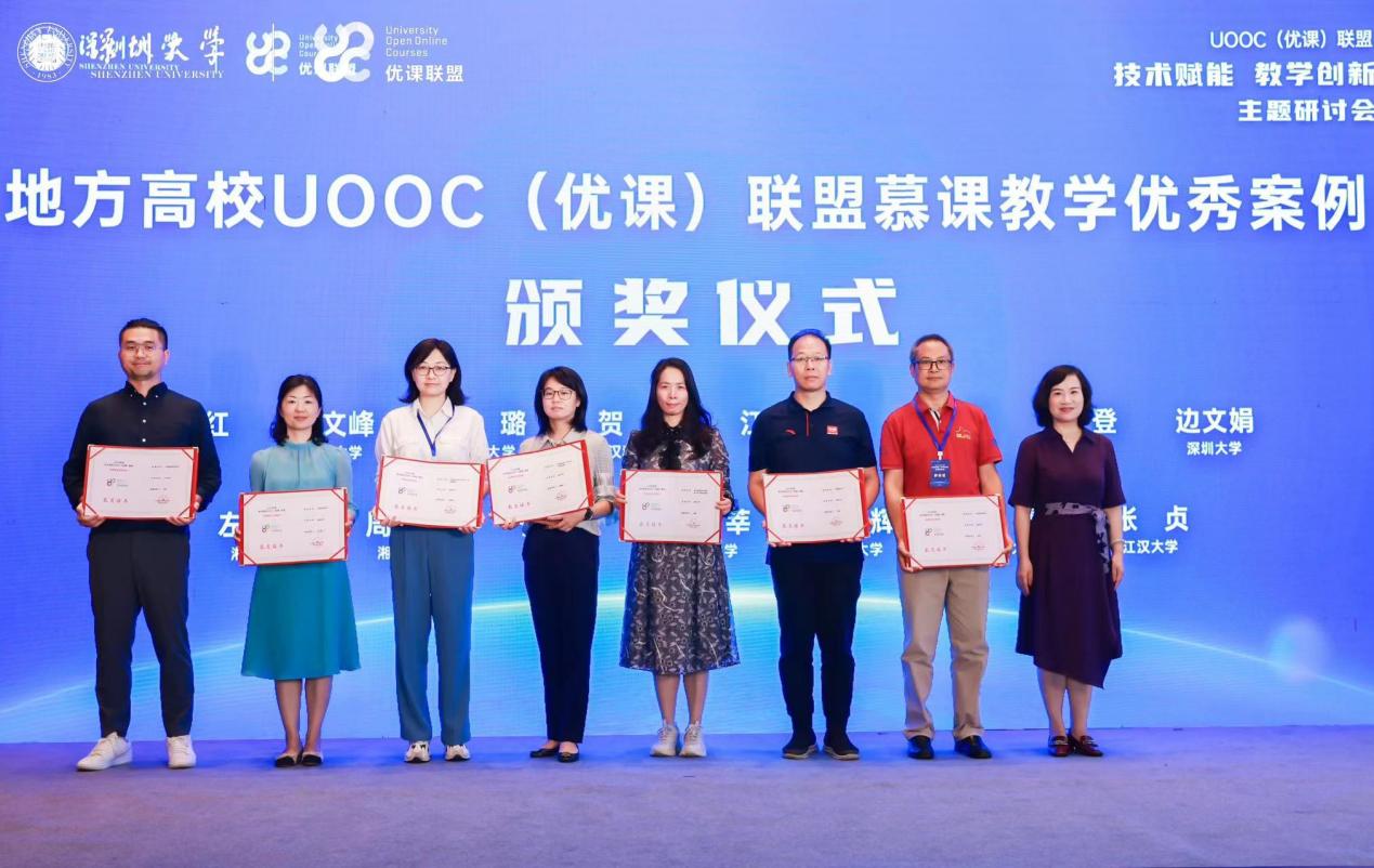 張曉紅和楊九民為獲得“優課聯盟慕課教學優秀案例”獎的30位獲獎教師頒獎。慕課教學優秀案例獲獎教師代表、深圳大學副教授羅莎老師講述了優課聯盟對教師教學上的支持。