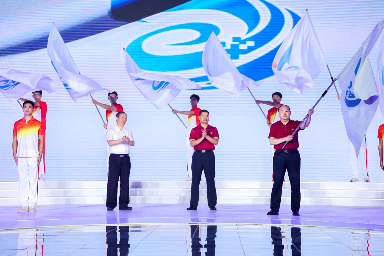 頒獎儀式上,與會領導和嘉賓為冠亞季軍團隊以及獲得學校集體獎的院校代表、獲得金獎的項目團隊代表頒獎。在隨后的會旗交接儀式上,本屆“互聯網+”廣東省分賽承辦高校深圳大學鄭重將會旗交與第十屆“互聯網+”廣東省分賽承辦院校嶺南師范學院。閉幕式開場燈光秀和舞蹈節目《闖》、歌舞節目《破浪》也都體現了創新創業的精神內核。
