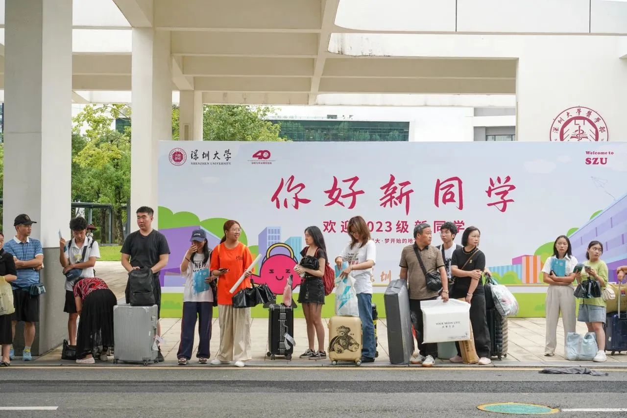 在麗湖校區,副校長李永華一行前往宿舍樓的新生報到區慰問,了解學生居住情況,聽取大家對宿舍環境的需求和建議。正義廣場上,“愛上深大”的巨大海報和“這一站,深圳大學”的雕塑引來許多新生拍照打卡。