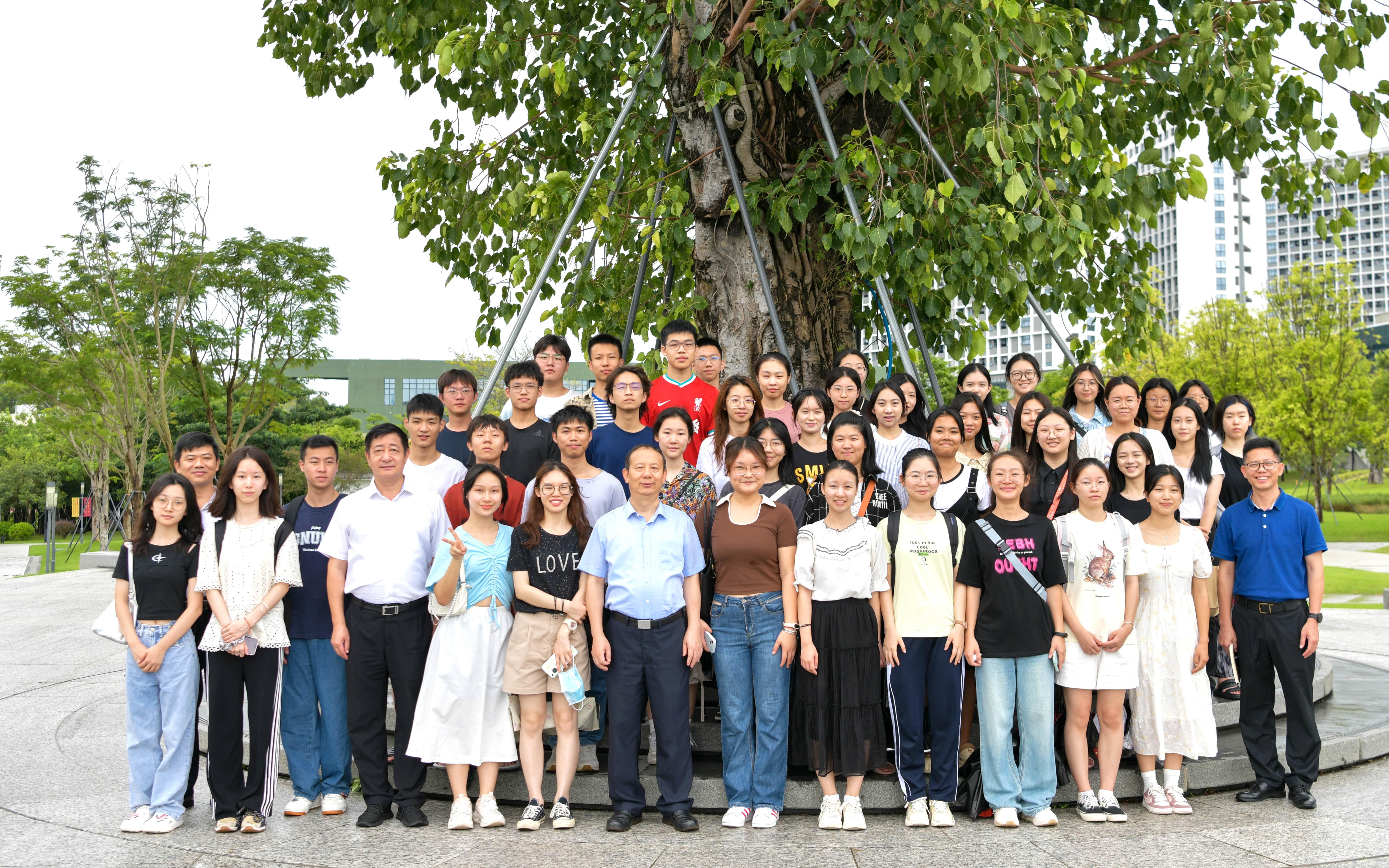 在麗湖校區(qū)中央圖書館,毛軍發(fā)一行先后參觀了閱讀空間、藏書室、學(xué)習(xí)空間、立體書庫和研討空間。通過麗湖校區(qū)管理辦公室負(fù)責(zé)人和中央圖書館負(fù)責(zé)人、工作人員的介紹,校領(lǐng)導(dǎo)和嘉賓進(jìn)一步了解中央圖書館的情況,對場地使用率、展廳布置和設(shè)計(jì)展開探討。調(diào)研途中,毛軍發(fā)一行來到自習(xí)區(qū),同學(xué)生們坐在一起,親切地詢問本科新生在圖書館學(xué)習(xí)的感受,勉勵他們刻苦鉆研、學(xué)有所成。同學(xué)們欣喜感動,祝福校領(lǐng)導(dǎo)和老師們教師節(jié)快樂,紛紛主動與校長一行合影留念。