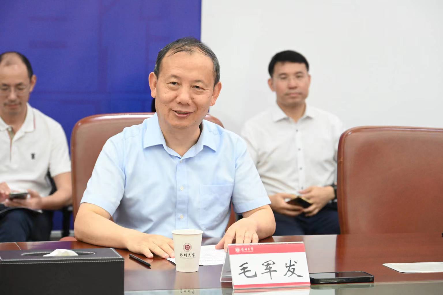毛軍發介紹深圳大學概況。他指出,深圳大學自建校以來就展現出了巨大發展潛力,是“深圳速度”的真實寫照。作為深圳地區目前唯一的綜合性大學,深圳大學在學科門類、師資力量、人才培養方面具有顯著優勢,培育了大批杰出校友。學校不斷深化科研體制改革,落實實驗室建設,基礎研究設施逐步完備,科研經費增長顯著,科研項目成績斐然,基礎性科研創新能力居地方高校前列。但同時,深圳大學亟需在增加博士點指標、打造科研高峰等方面加大力度。