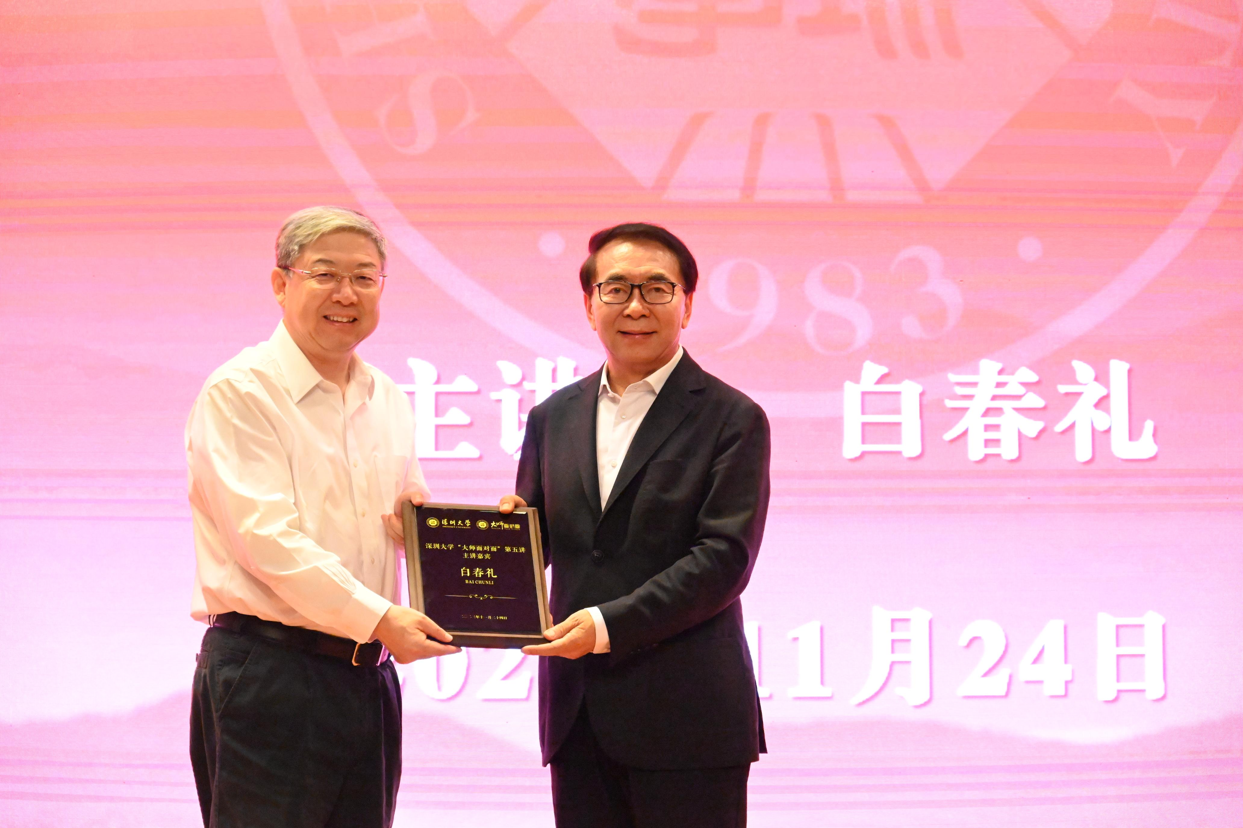 “工欲善其事,必先利其器”,作為國之重器,我國的重大科技基礎(chǔ)設(shè)施是何時發(fā)展起來的?在發(fā)展的過程中對科技創(chuàng)新產(chǎn)生了怎樣的影響和意義?未來的發(fā)展又有怎樣的機遇和挑戰(zhàn)?11月24日上午,深圳大學(xué)粵海校區(qū)匯星樓1號報告廳座無虛席,“大師面對面”系列講座第五講在這里開講。“一帶一路”國際科學(xué)組織聯(lián)盟主席、中國科學(xué)院學(xué)部主席團(tuán)名譽主席、中國科學(xué)院大學(xué)和中國科學(xué)技術(shù)大學(xué)名譽校長、中國科學(xué)院原院長、中國科學(xué)院院士白春禮受邀作《科技創(chuàng)新與“國之重器”》專題報告,細(xì)致而生動地講述了大科學(xué)裝置的歷史和意義,并描繪了我國發(fā)展重大科技基礎(chǔ)設(shè)施的藍(lán)圖。
