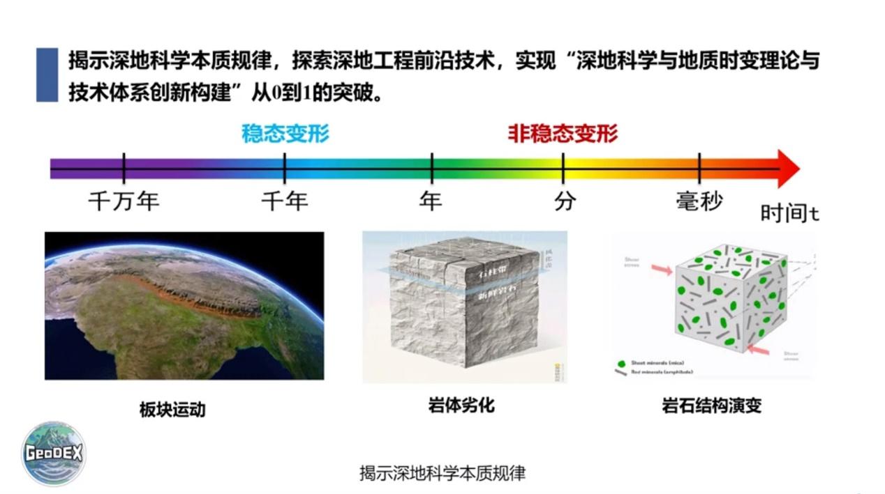 GeoDEX項目研究將為跨越地質年代與人類時間尺度的不同空間巖土體與地質環境的演變過程研究,提供充分的地質時變信息及證據,揭示深地科學本質規律,探索深地工程前沿技術,實現“深地科學與地質時變理論與技術體系創新構建”從0到1的突破。
