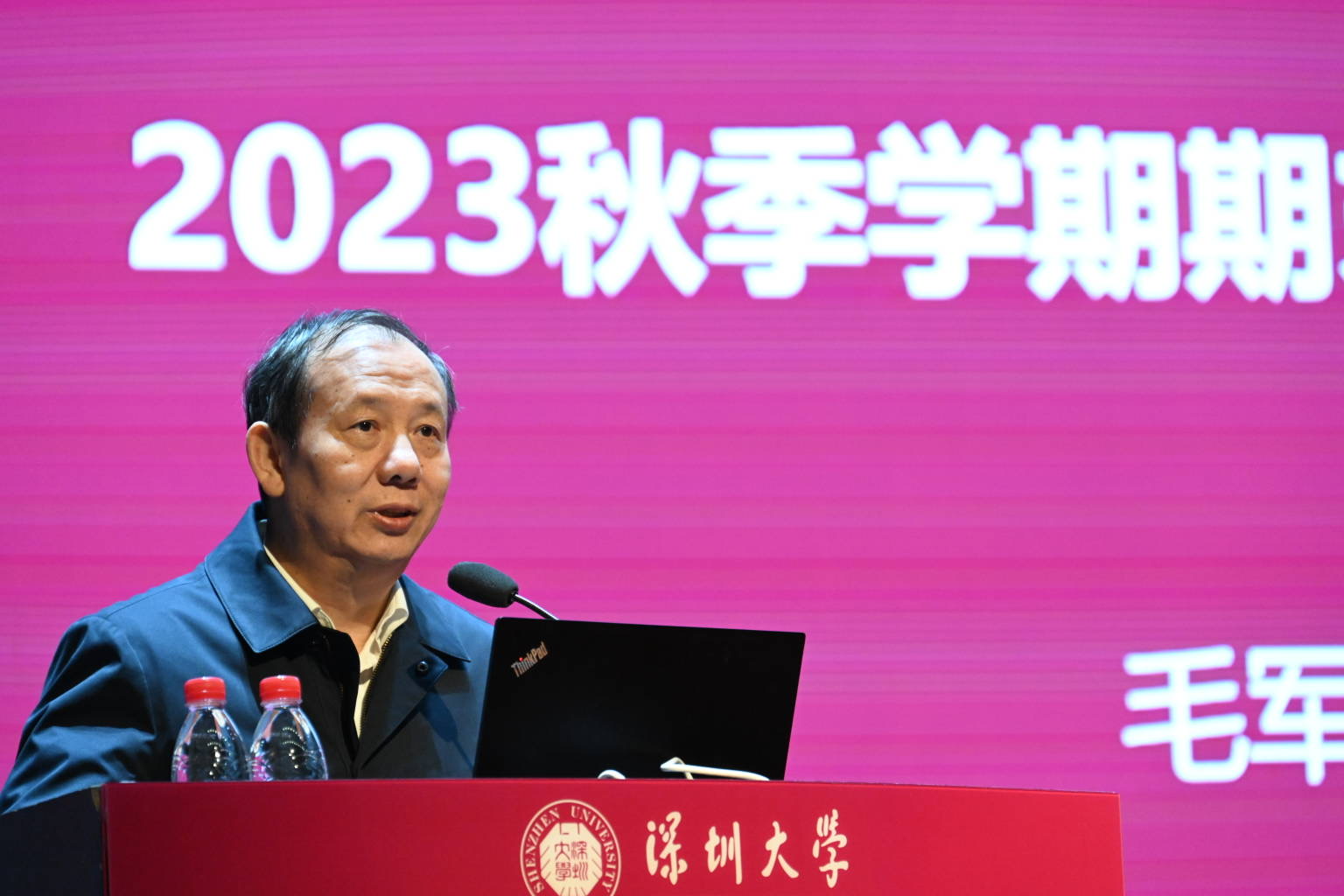 校長毛軍發以“2023十大標志性工作進展”總結2023年深圳大學在人才培育、學科建設、國際交流、基礎建設、學生工作、重點工程、社會服務和校慶工作等方面的成果。他指出,2023年,深圳大學學科高峰加速崛起,師資水平再上臺階,教育教學提質增效,創新能力持續提升,國際合作深化拓展,學生工作卓有成效,重點工程高效推進,社會服務走深走實,“1+3+X”專項工程實施有效,并能清晰認知總結問題和不足。