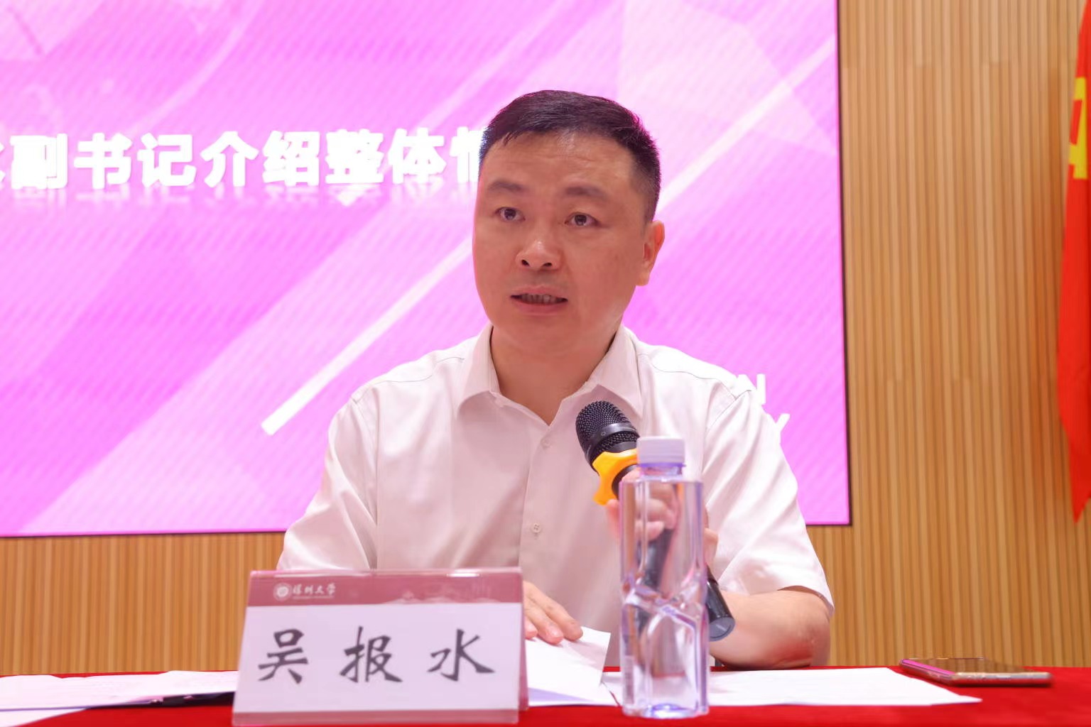 7月5日上午,深圳大學在聚翰齋106黨建工作坊舉行試用期滿考核中層領導干部集體談話。深圳大學黨委書記李清泉、黨委副書記吳報水、黨委組織統戰部部長王志忠出席會議。全體中層試用期滿轉正干部及同期提拔二級學院副書記參加會議。吳報水主持會議。