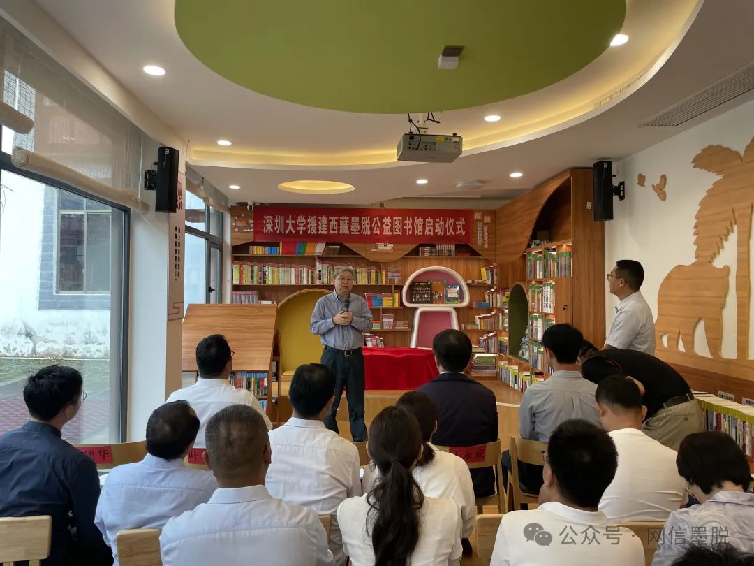 座談會(huì)后,雙方在蓮花書屋共同啟動(dòng)深圳大學(xué)援建西藏墨脫公益圖書館圖書捐贈(zèng)儀式。由深圳大學(xué)向墨脫縣授予“時(shí)光圖書館”牌匾,捐贈(zèng)“善款助墨脫、書籍潤心靈”第一批次公益圖書4000余冊(cè),共同號(hào)召全社會(huì)關(guān)心關(guān)注兒童教育事業(yè),為文化惠民、文化潤邊積極奉獻(xiàn)力量。