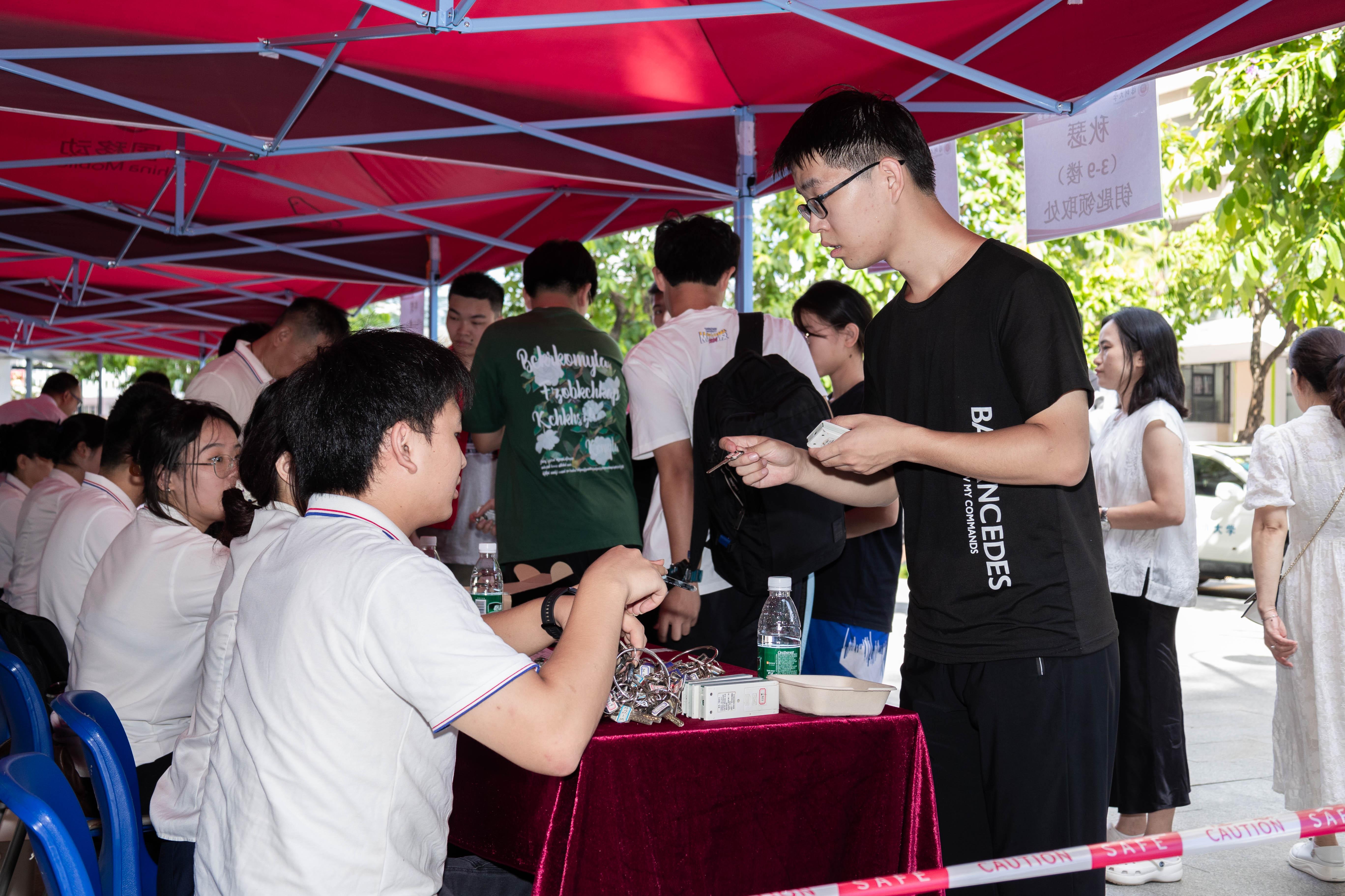 學子與荔園初次見面、開啟人生新旅程,“想讓家人一起見證這樣重要而有紀念意義的時刻”;孩子初次離家開始獨立生活,“想看看孩子未來幾年生活和學習的環境”;許多新生全家齊動員,一家幾口一起前來送新生報到。放下行李,安排妥當,一家人忙活了半天,一起在深大吃頓飯吧!粵海校區的聽山餐廳特意設置了6個小吃攤位,還有“新”學期有趣有料(滾可樂)、“新”學期好運連連(投壺)、“新”學期投中好運(套圈)等有趣的游戲,更有機會抽到“霸王餐”“漆扇”和“祝福小盆栽”!你是那個幸運兒嗎?